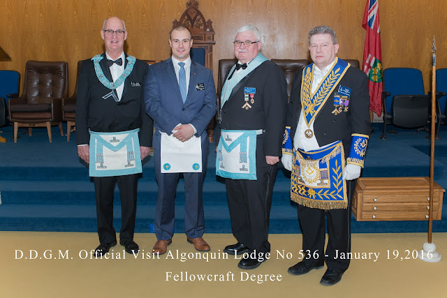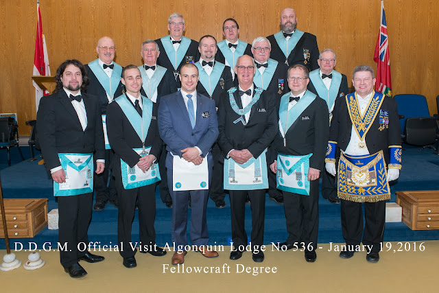 On January 19th, Algonquin Lodge received an official visit by D.D.G.M. Clive D. Stephenson. During his visit a Fellowcraft degree was conferred.