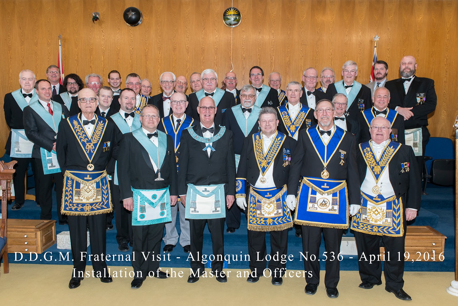 On April 19, 2016, the D.D.G.M. Clive D. Stephenson paid a Fraternal Visit to Algonquin Lodge No. 536. The Master and Officers of the lodge were installed during his visit.