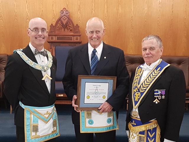 Nickel Lodge No 427’s September 5, 2018 Regular Meeting was a fraternal visit from the new D.D.G.M., R.W. Bro. Paavo Liukko. The meeting had both a celebration of 60 Years a Mason for Bro. Gerry Thompson and the passing of Bro. Greg Blomme.