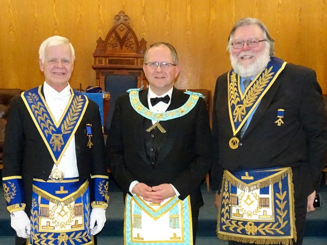 City of Lakes Lodge No. 536, at their regular meeting on December 11, 2018, were pleased to receive visiting Brethren from Algoma East, R.W. Bro. George Edward Thomas, the current DDGM of Algoma East, and his District Secretary, R.W. Bro. James Broomhead.
