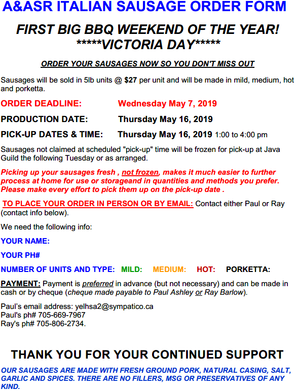 The Scottish Rite’s first Sausage Fundraiser of 2019 is on. Orders will be accepted until May 7th, 2019.