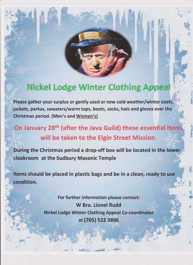 W.Bro. Lionel Rudd is leading a Winter Clothing Appeal for Charity.