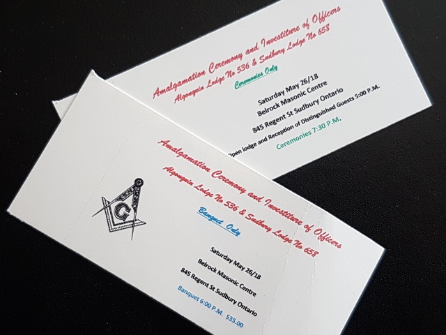 Tickets are now available for the Saturday May 26th, 2018 Amalgamation Ceremony and Investiture of Officers as well as the banquet. The itinerary is as follows: 5:00 p.m. Opening of the lodge and reception of Distinguished guests 6:00 p.m. Dinner in the Banquet Hall 7:30 p.m. Amalgamation Ceremony and Investiture of Officers The banquet tickets …