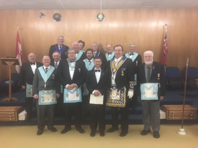 Algonquin Lodge received a Fraternal Visit by D.D.G.M. R.W. Bro. Jason B Ashley on November 22, 2016. Work for the evening included the Sublime Degree of a Master Mason. Thanks to Bro. Dick McIvor for the photograph.