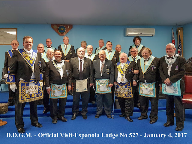 D.D.G.M. R.W. Bro. Jason B.Ashely paid an Official Visit to Espanola Lodge No. 527 on Wednesday January 4, 2017. Many thanks to Bro. R. Barlow for the images.